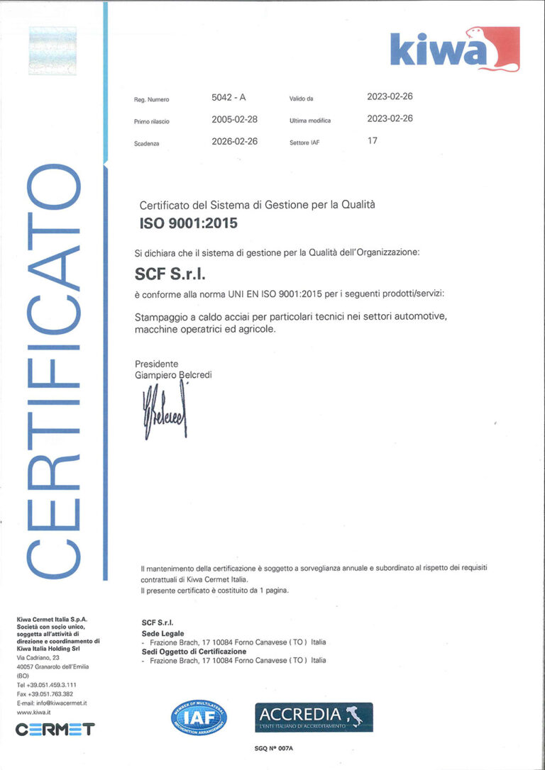 Over the years, thanks to numerous investments aimed at improving productivity and expanding the machinery fleet, combined with constant attention to customer needs, SCF has become a solid and reliable player in the hot forging sector in Canavese and throughout Italy.